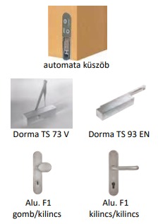 Automata padlótömítés. Választható optikai kitekintő. A tűzgátló ajtó felülete illeszkedik a belső szobaajtókhoz.