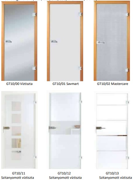 A teljes üvegajtók és a frízes üvegajtólapok csak ESG biztonsági üvegből készülnek: víztiszta, savmart (feláras), mastercare.